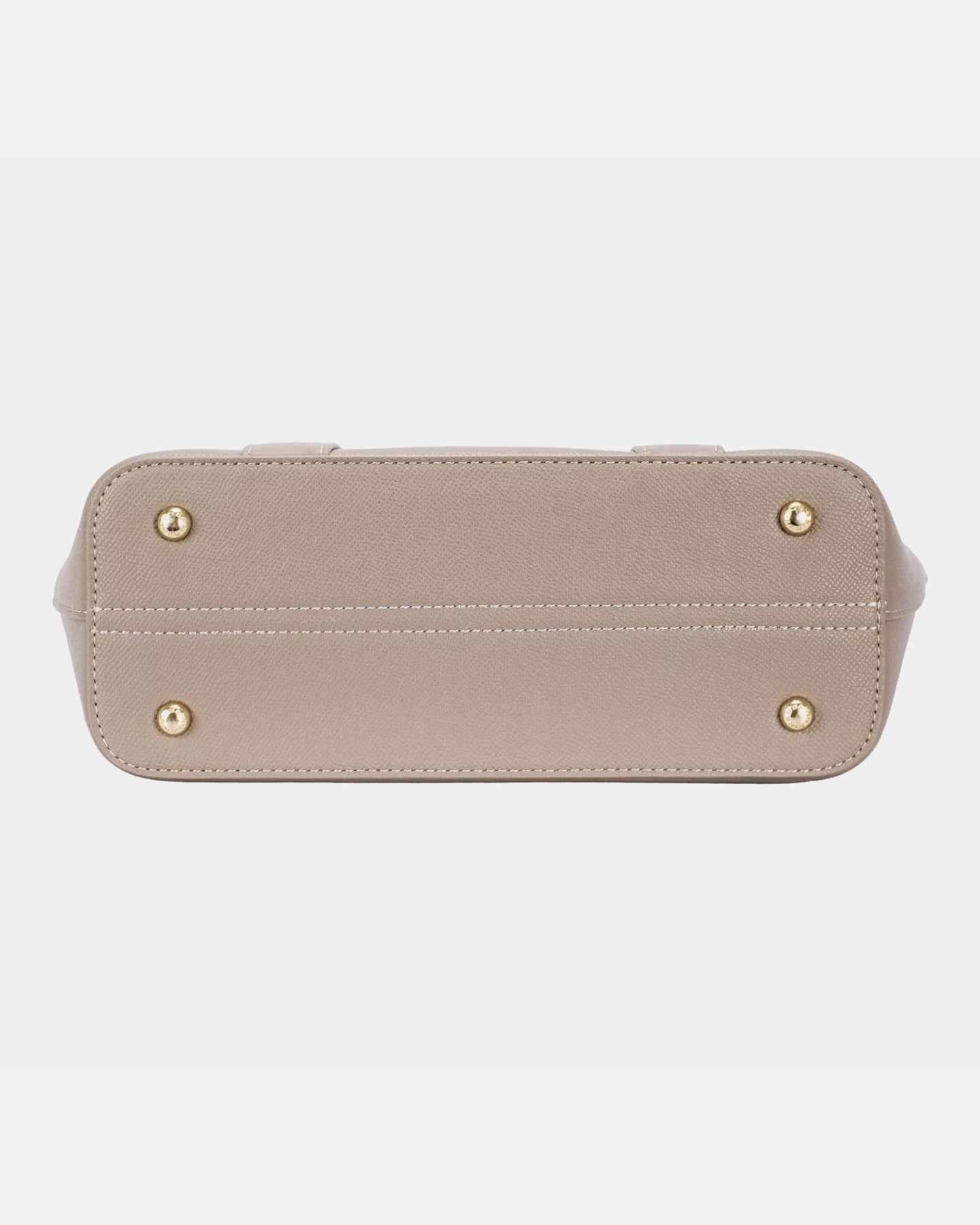 This tote bag is crafted from leather and features gold hardware accents for a luxurious and stylish look. The leather material adds durability and a sophisticated touch to the bag. The gold hardware details provide an elegant and eye-catching contrast, elevating the overall design. Perfect for everyday use or special occasions, this tote bag is both practical and fashionable. Carry your essentials in style with this Leather Tote Bag with Gold Hardware for a chic and polished accessory.