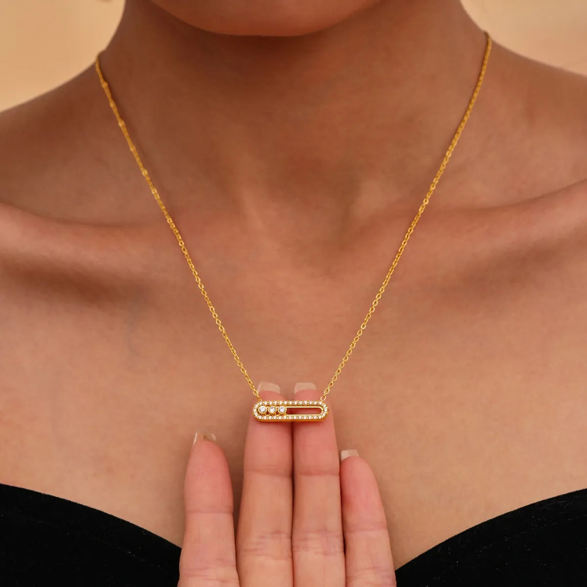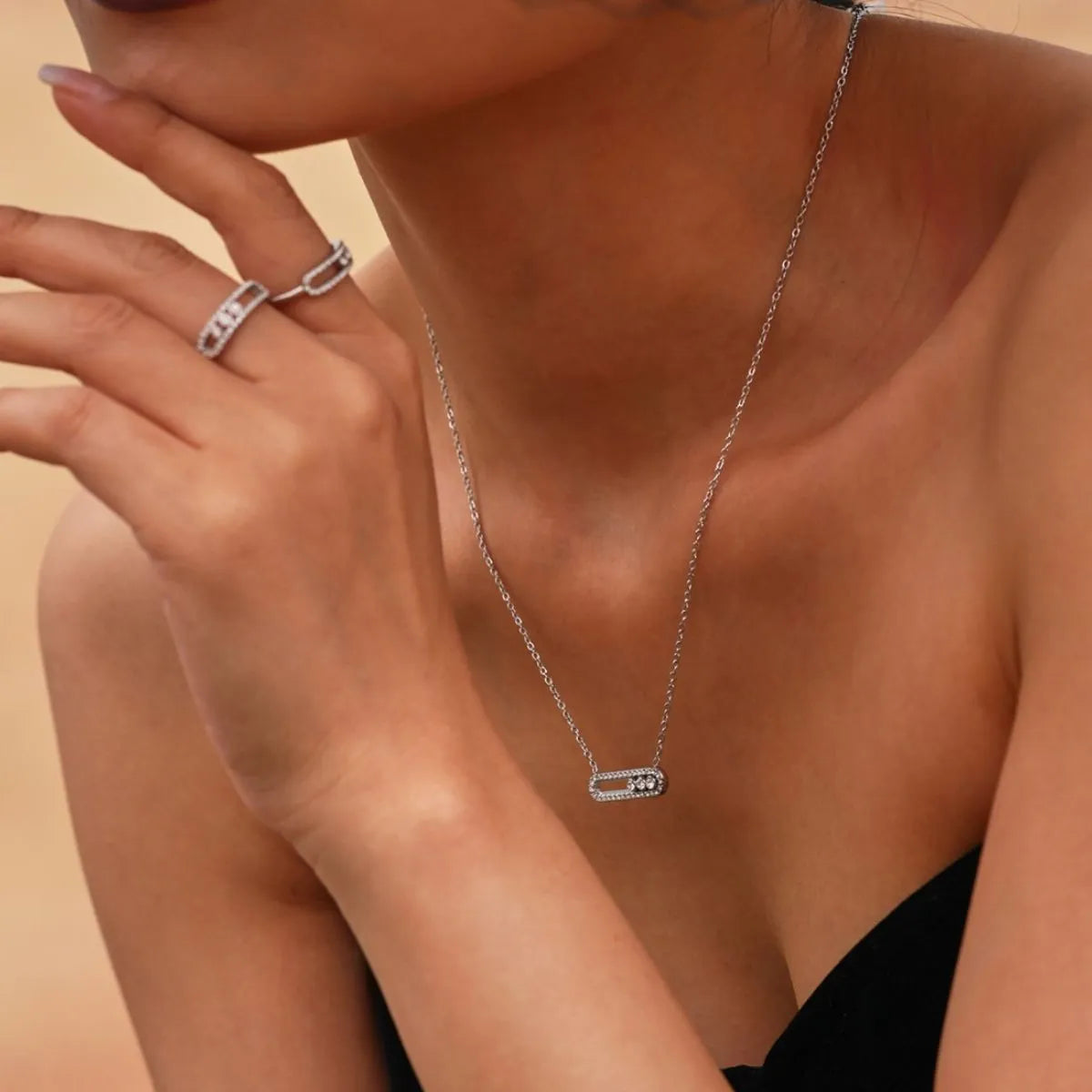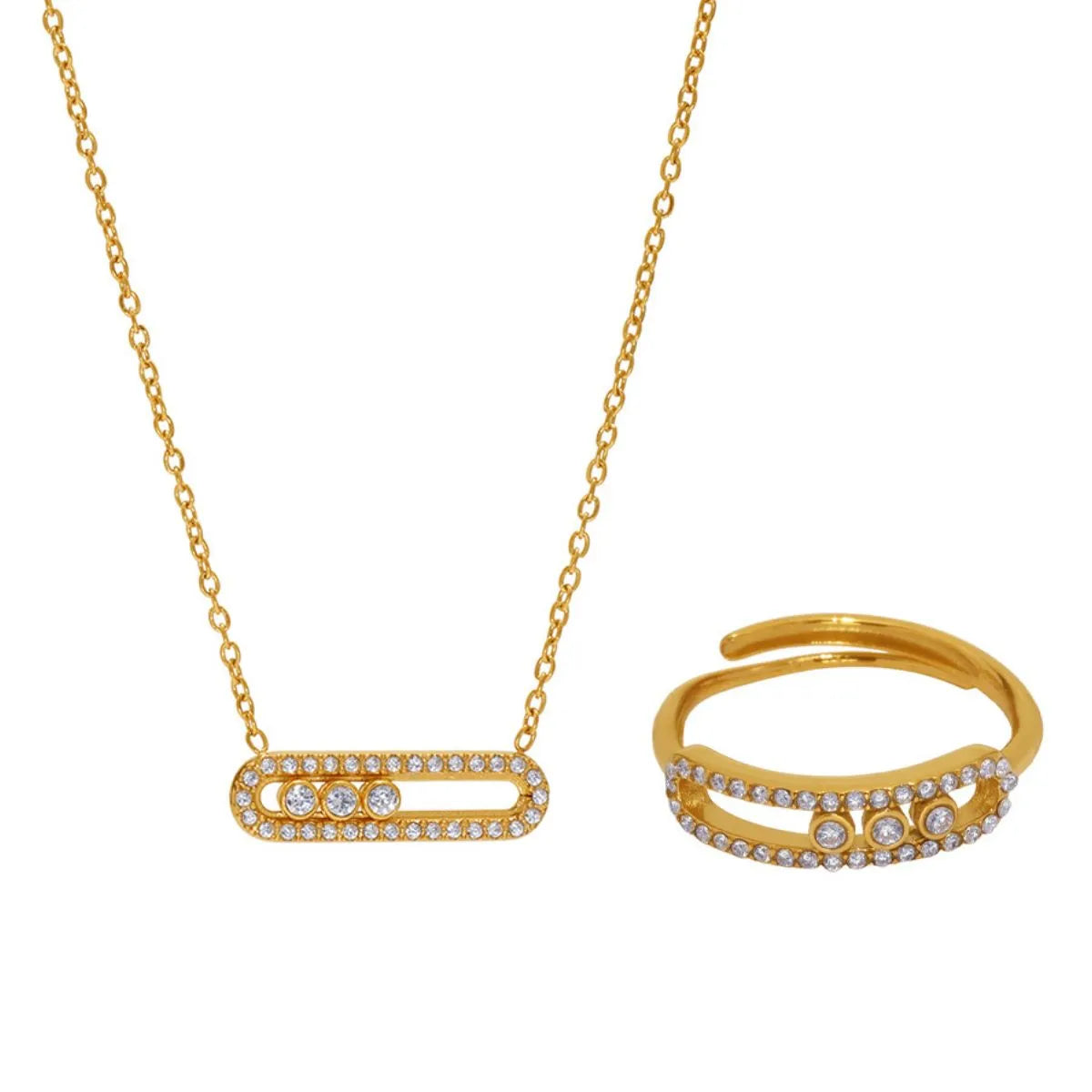 Moving Crystal Bar Necklace and Ring Jewelry Set