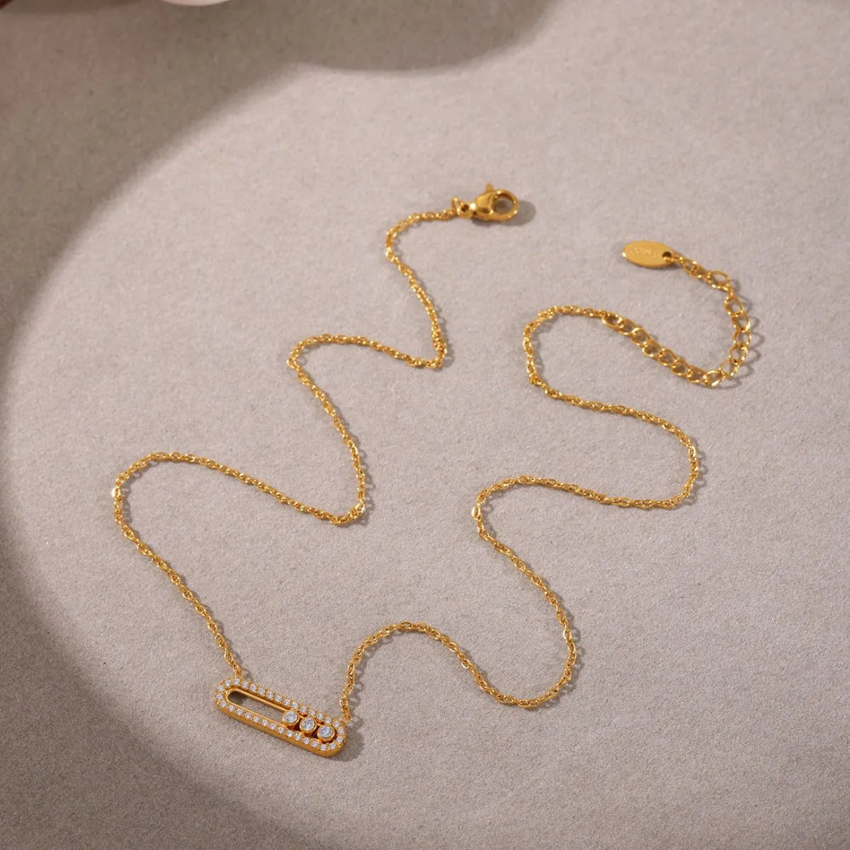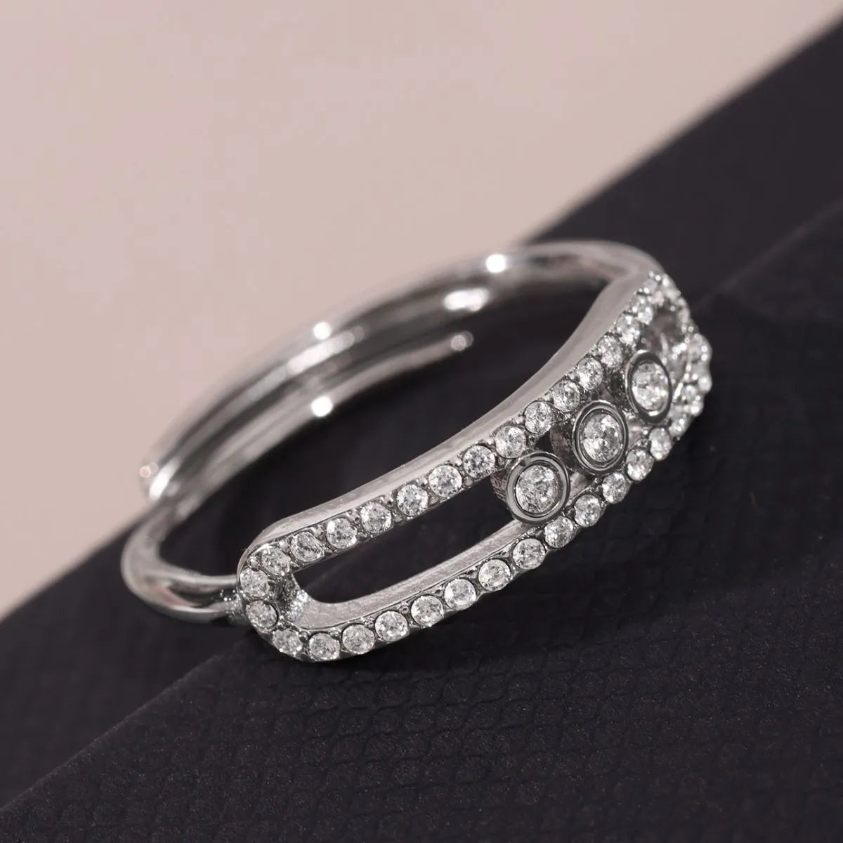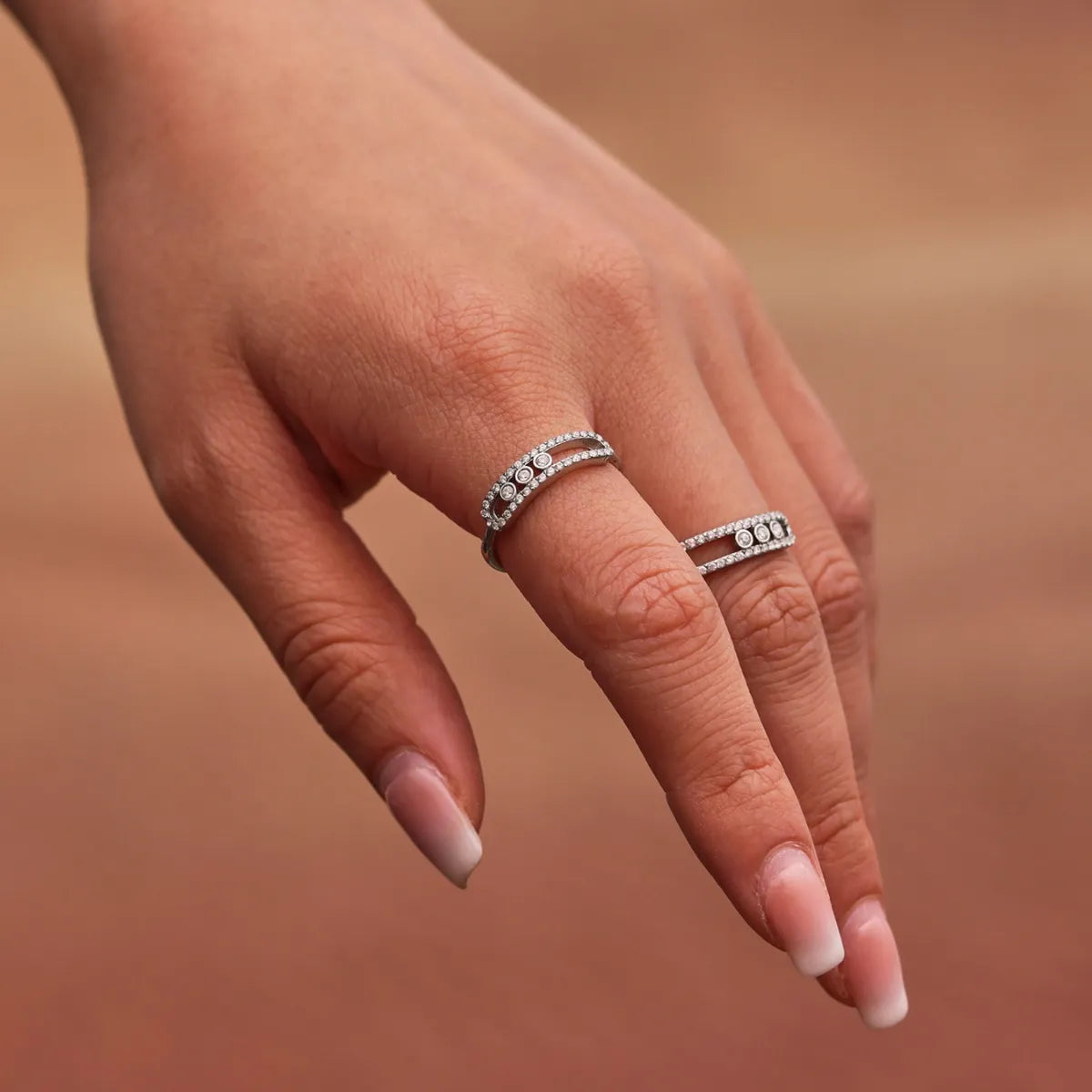 Moving Crystal Bar Necklace and Ring Jewelry Set