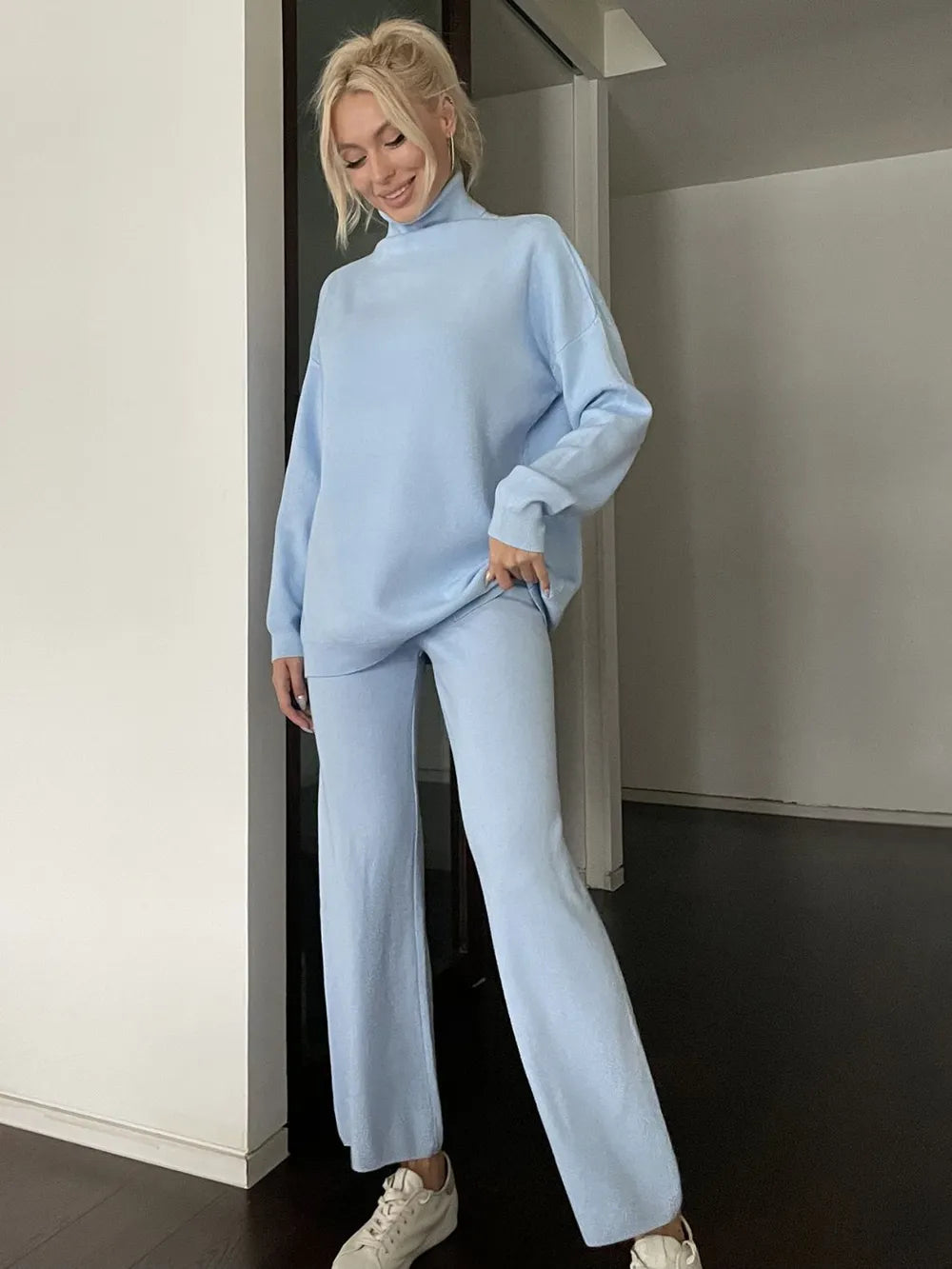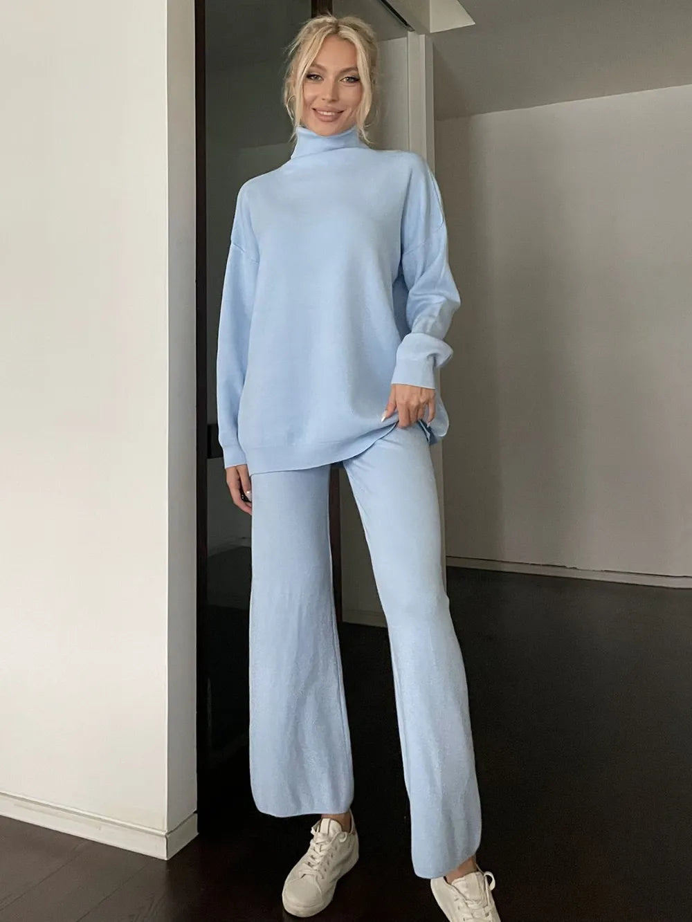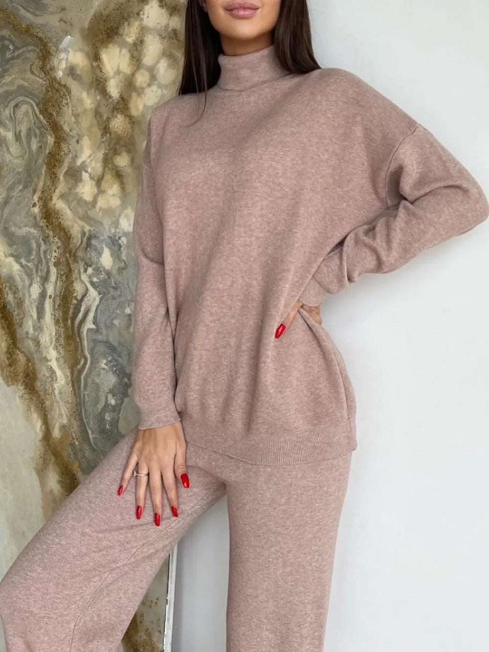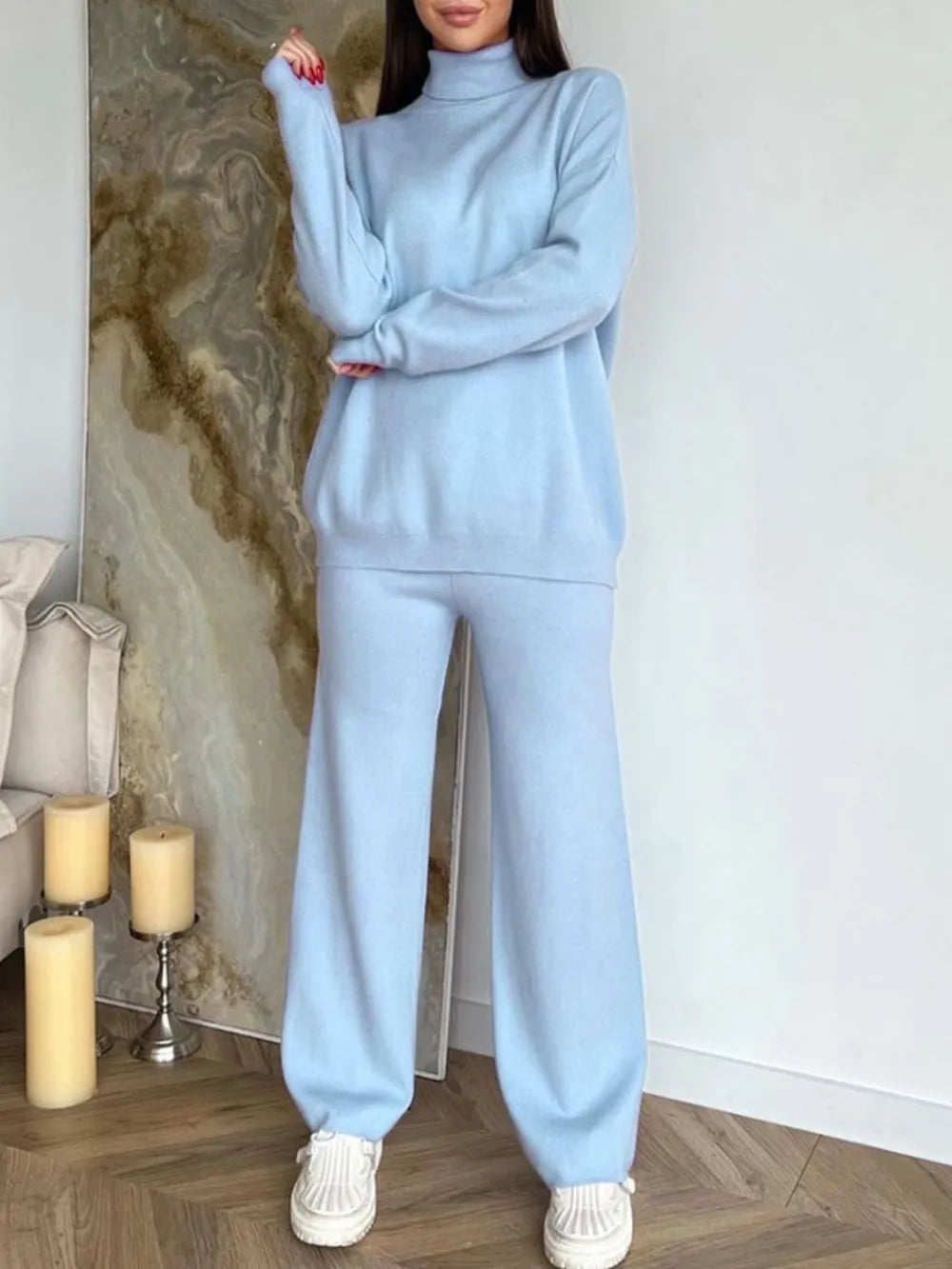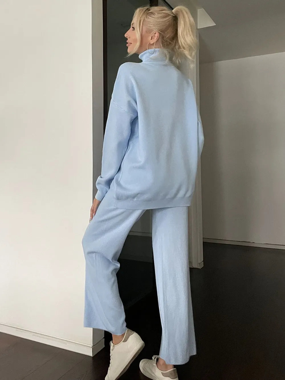 Turtleneck Long Sleeve Top and Drawstring Pants Sweater Set