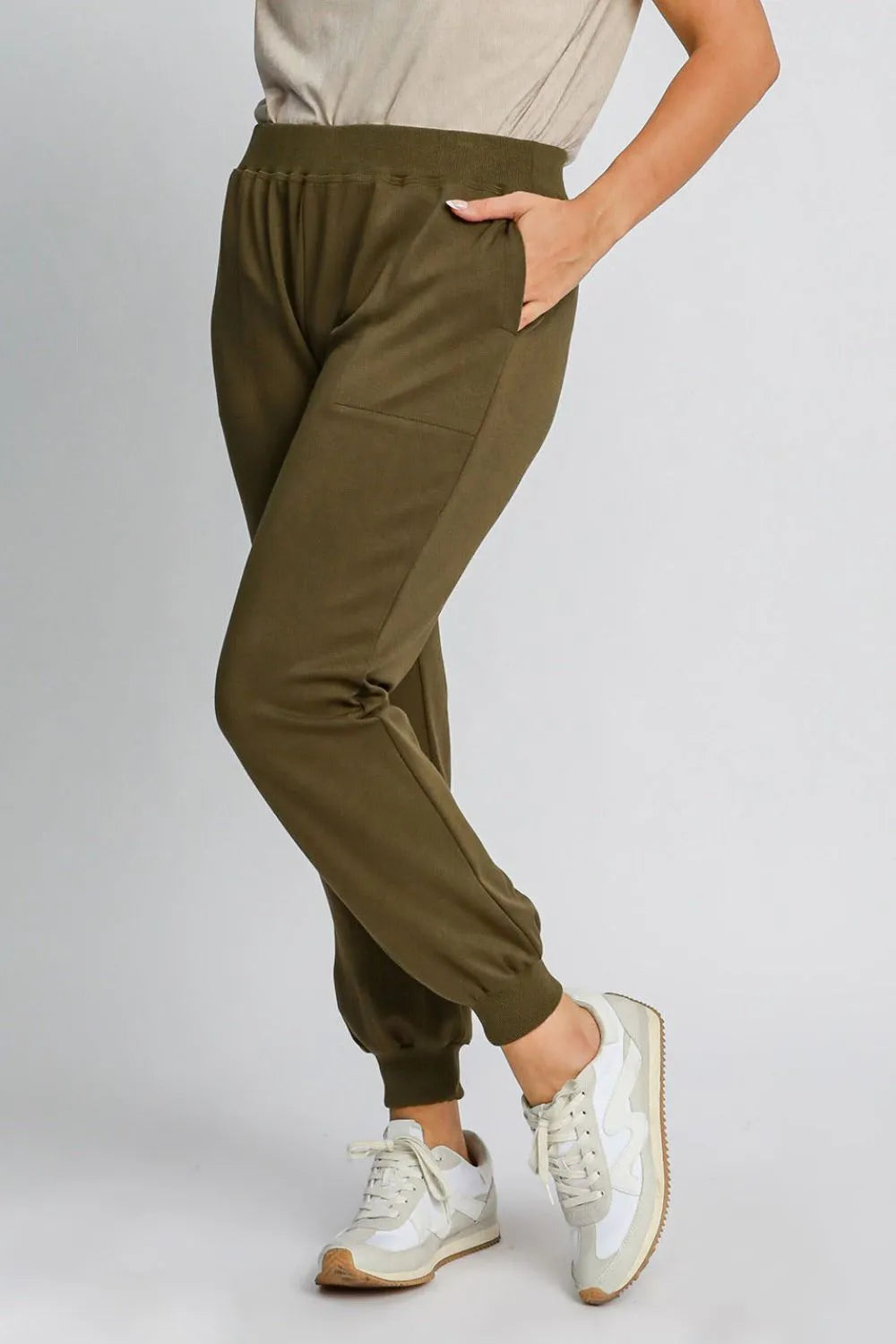 Umgee Full Size High Rise Elastic Waist Knit Joggers with Pockets Plus Size