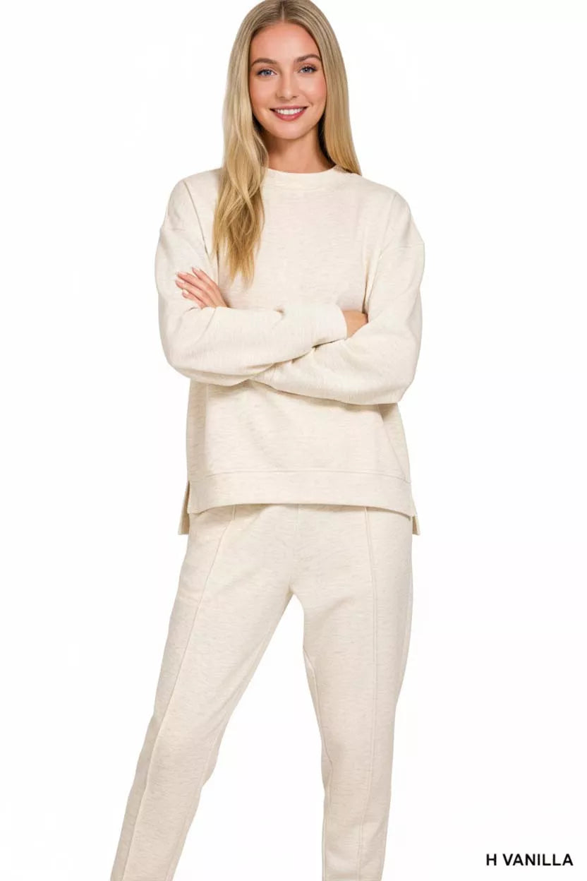 Zenana Scuba Mock Neck Sweatshirt and Joggers Set