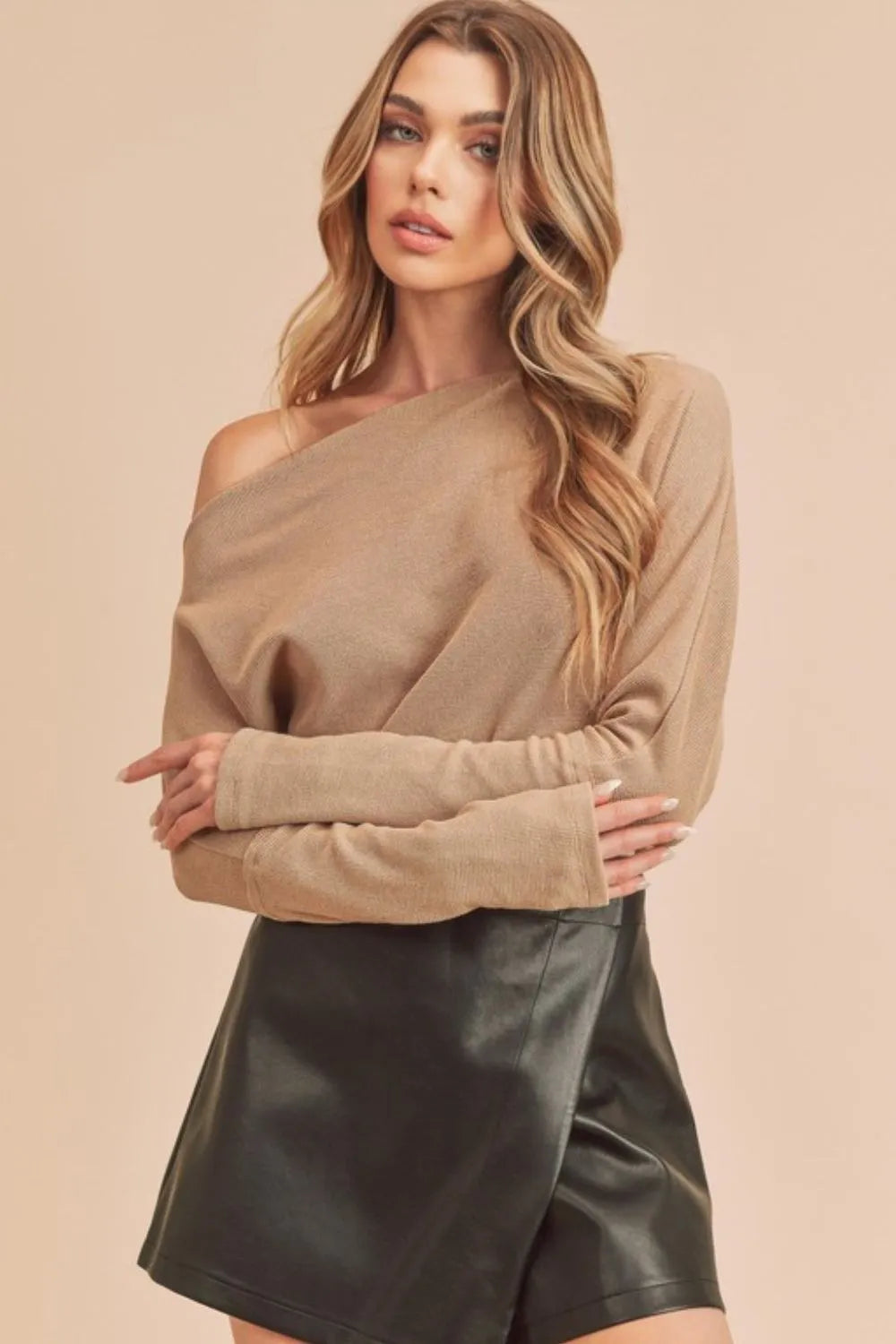 Aemi + Co One Shoulder Long Sleeve Knit Top