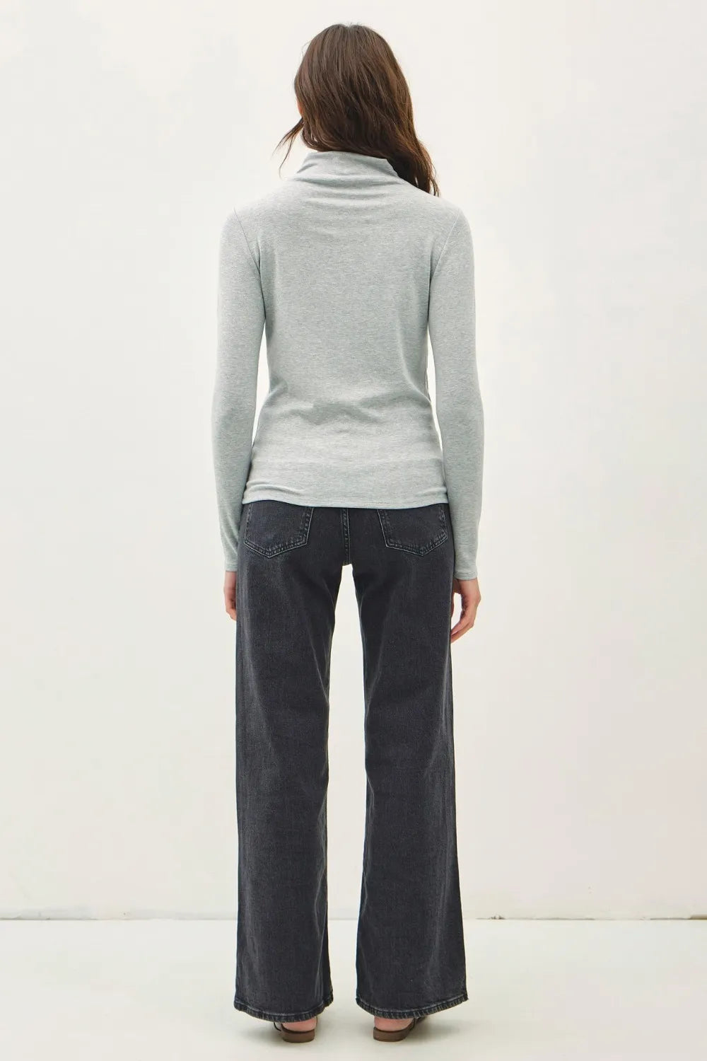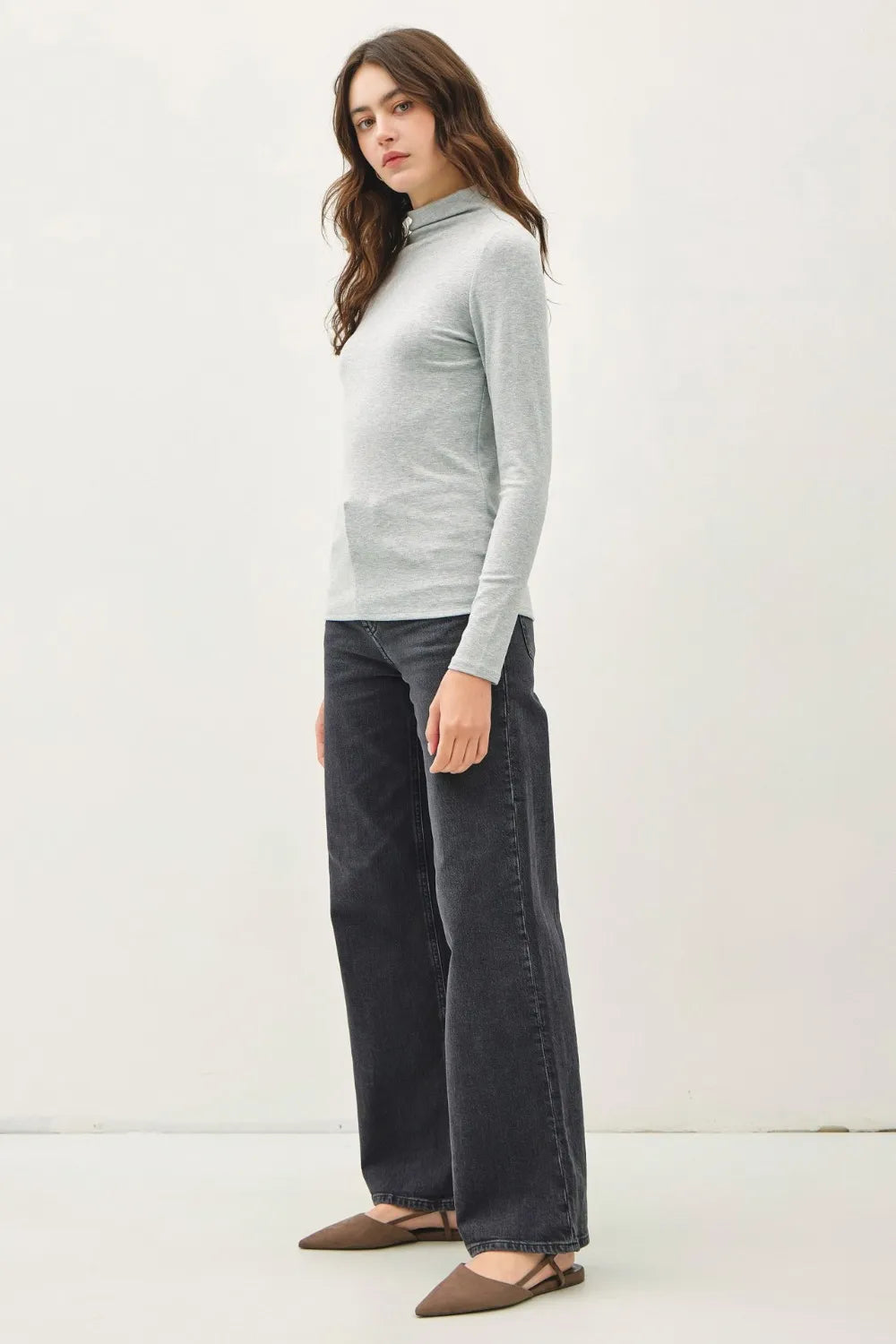 The Mock Neck Long Sleeve T-Shirt is a versatile and modern essential for any wardrobe. Featuring a stylish mock neck design and long sleeves, this t-shirt offers a chic and sophisticated look that can be easily dressed up or down. The soft and stretchy fabric provides a comfortable and flattering fit, making it a go-to piece for layering or wearing on its own. Whether paired with jeans for a casual ensemble or styled with trousers for a more polished outfit, this mock neck long sleeve t-shirt is a versatile and stylish option that effortlessly transitions from day to night. Add this piece to your collection for a touch of elevated simplicity in your everyday looks.