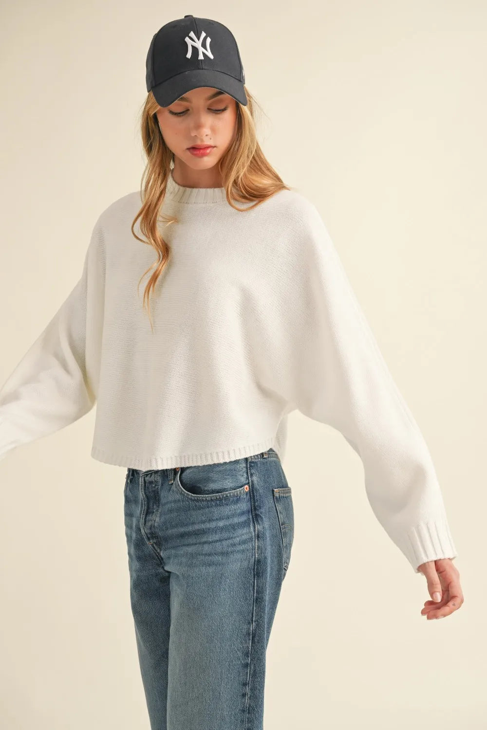 Mable Round Neck Dolman Sleeve Cropped Sweater