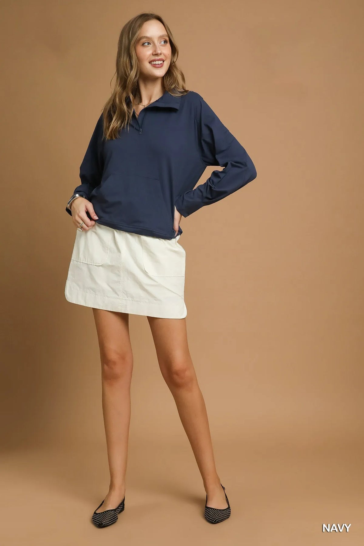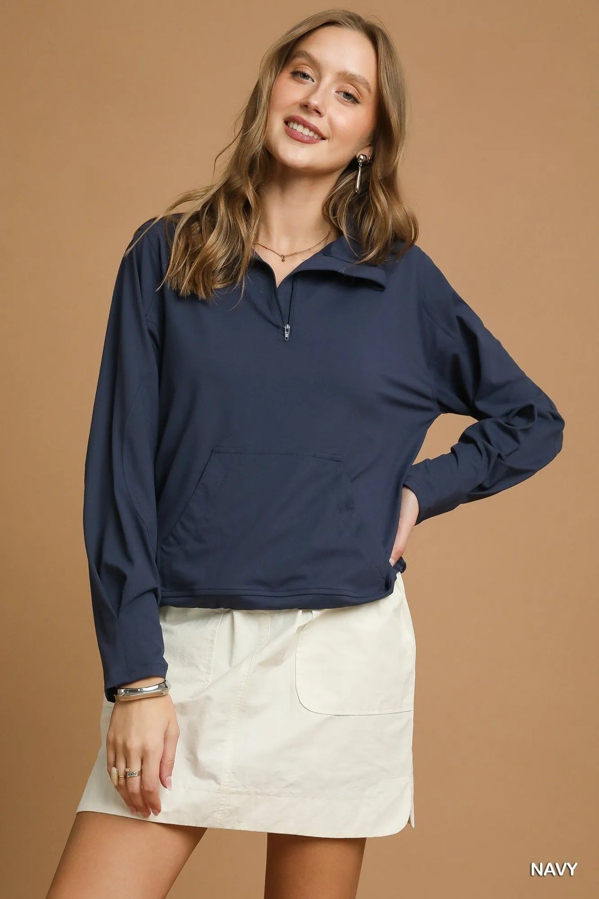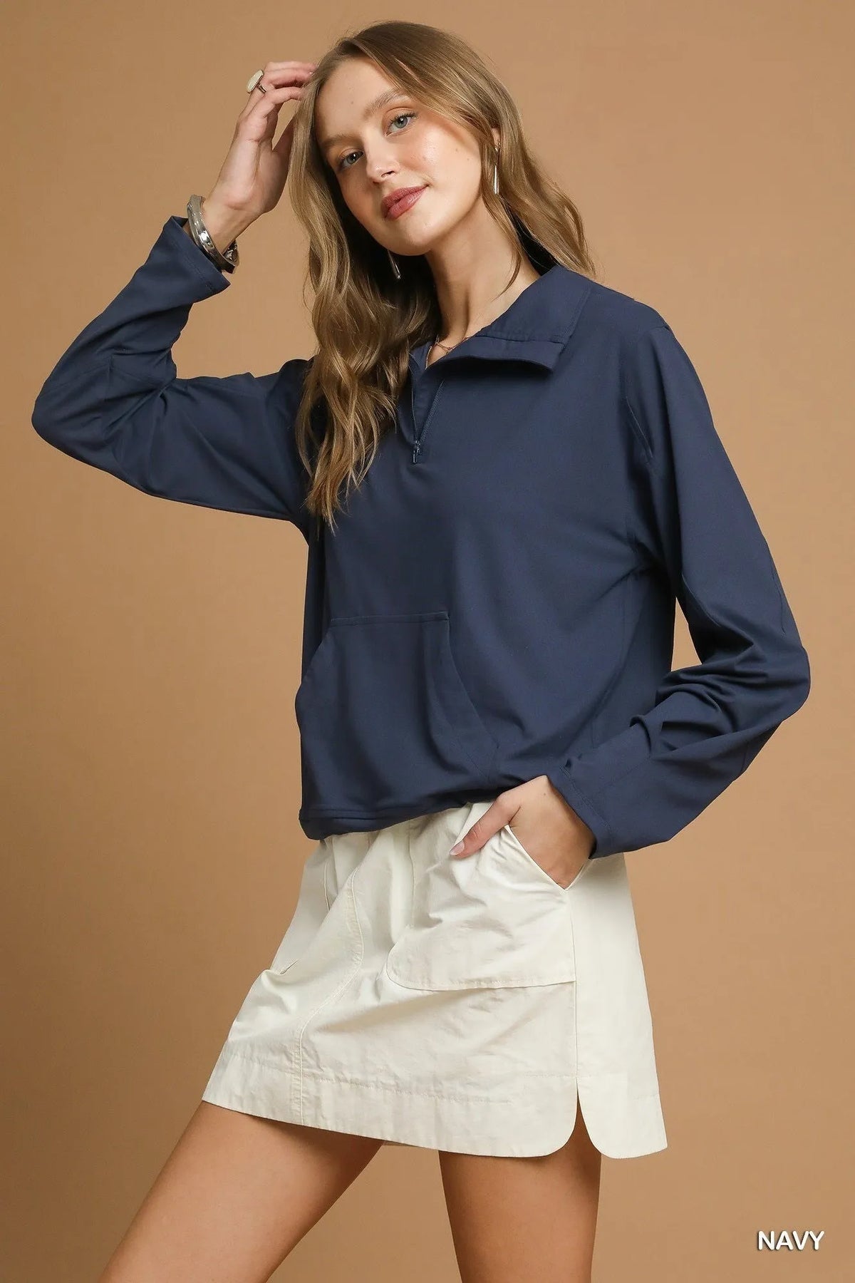 Umgee Half-Zip Sweatshirt with Front kangaroo pocket