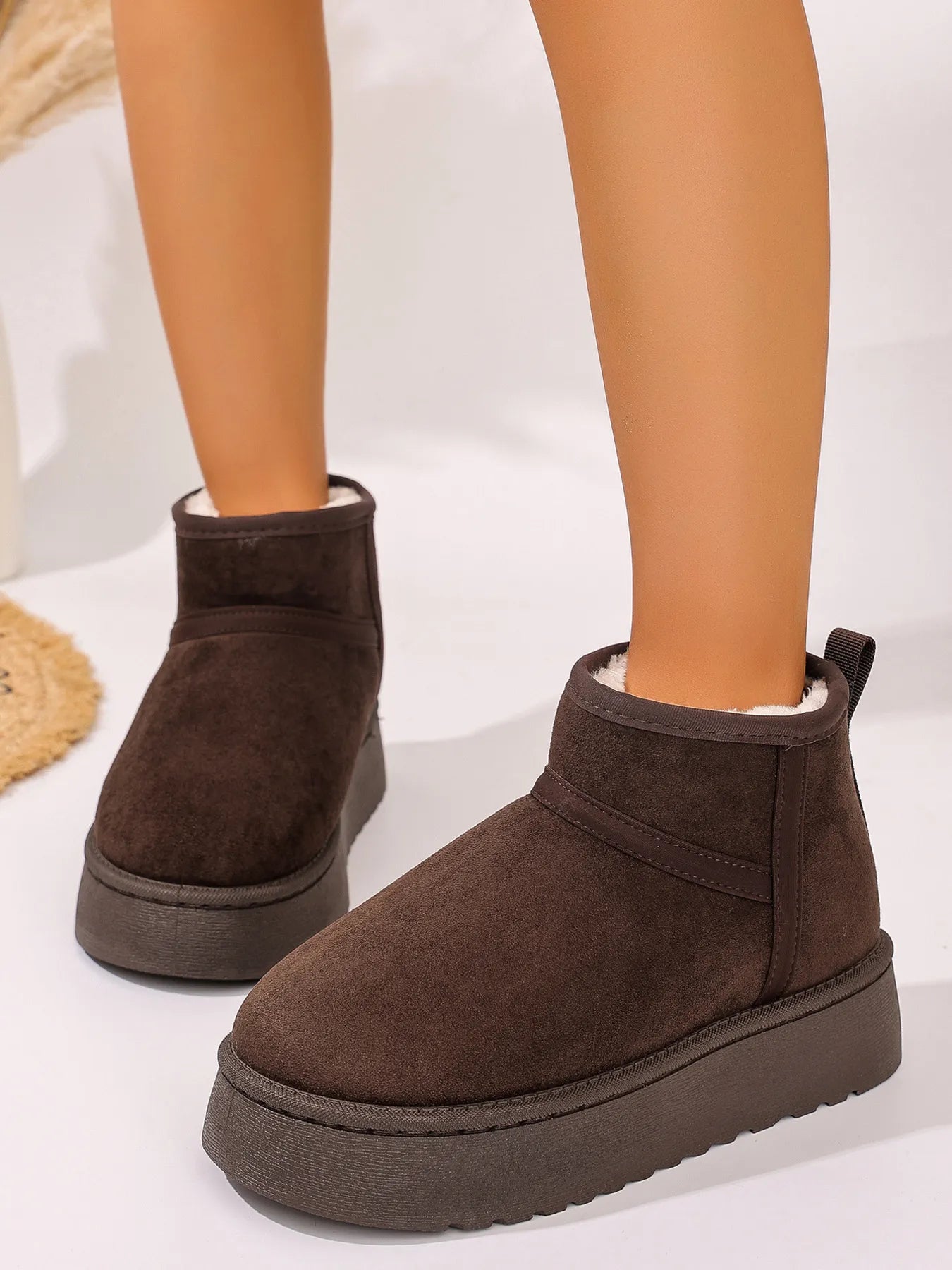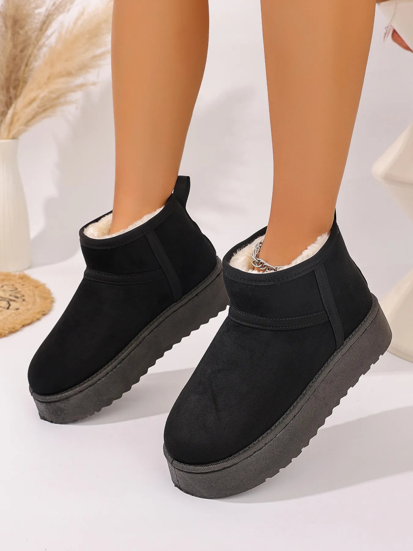 Platform Winter Ankle Boots with Cozy Fleece Lining