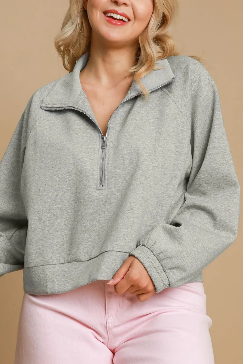 Umgee Full Size Half Zip Cropped Sweatshirt Plus Size
