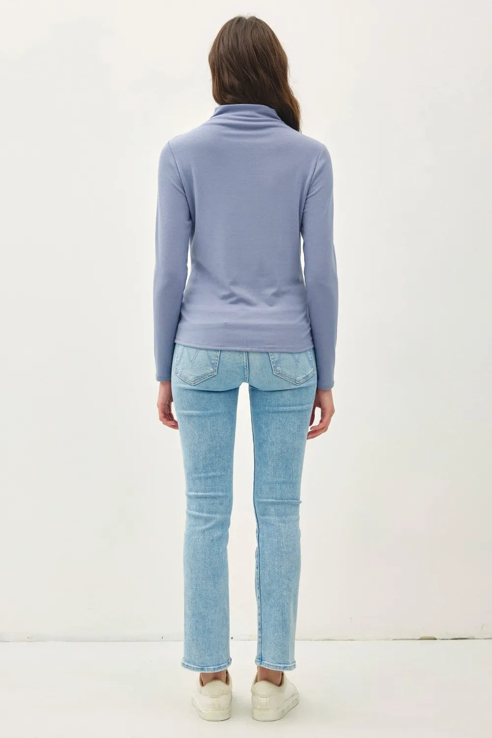 The Mock Neck Long Sleeve T-Shirt is a versatile and modern essential for any wardrobe. Featuring a stylish mock neck design and long sleeves, this t-shirt offers a chic and sophisticated look that can be easily dressed up or down. The soft and stretchy fabric provides a comfortable and flattering fit, making it a go-to piece for layering or wearing on its own. Whether paired with jeans for a casual ensemble or styled with trousers for a more polished outfit, this mock neck long sleeve t-shirt is a versatile and stylish option that effortlessly transitions from day to night. Add this piece to your collection for a touch of elevated simplicity in your everyday looks.