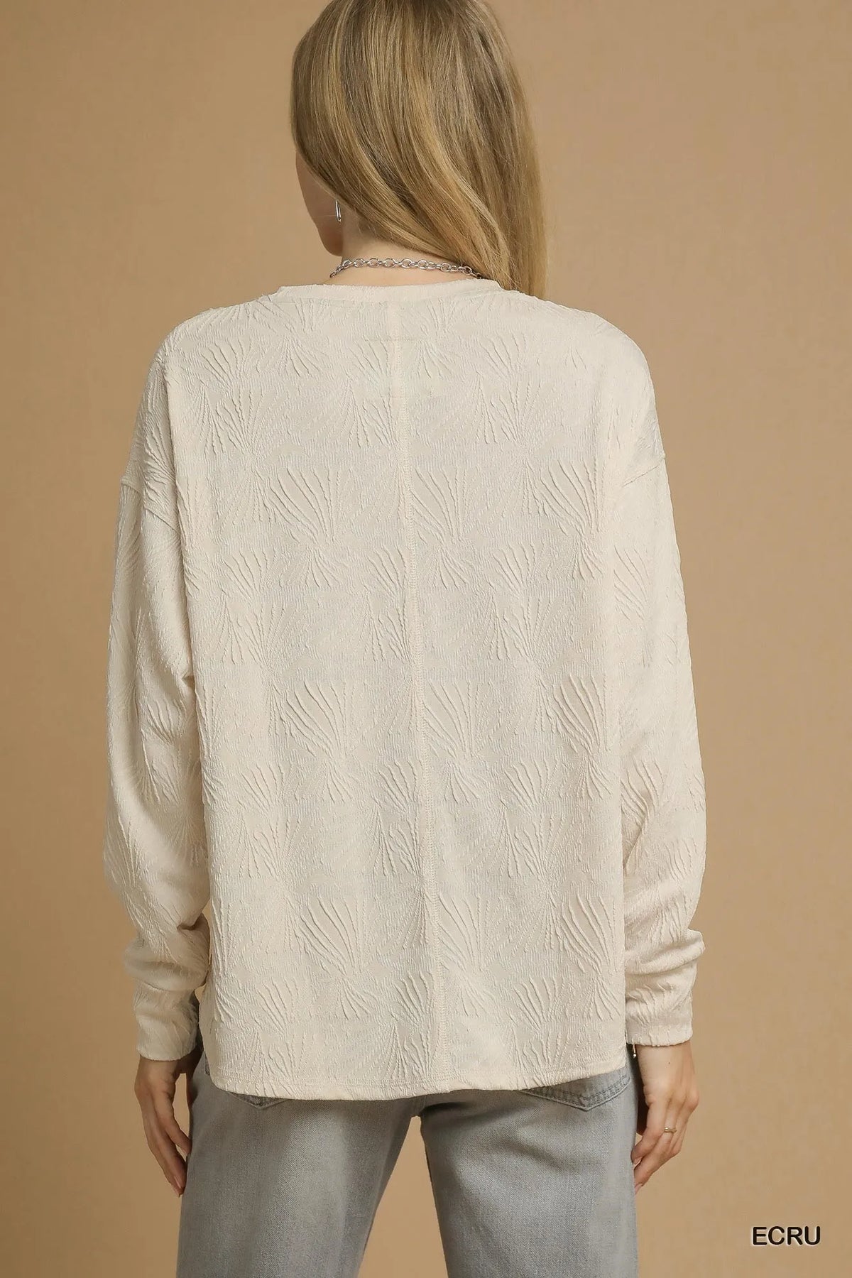 The Textured Knit Long Sleeve Top is a versatile and stylish piece to add to your wardrobe. Made from textured knit fabric, this top offers a unique and eye-catching look. The long sleeves provide warmth and coverage, making it perfect for layering or wearing on its own. Effortlessly chic and comfortable, this top is a great option for both casual and dressier outfits.