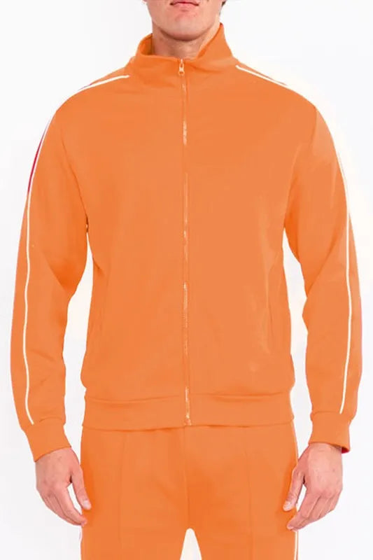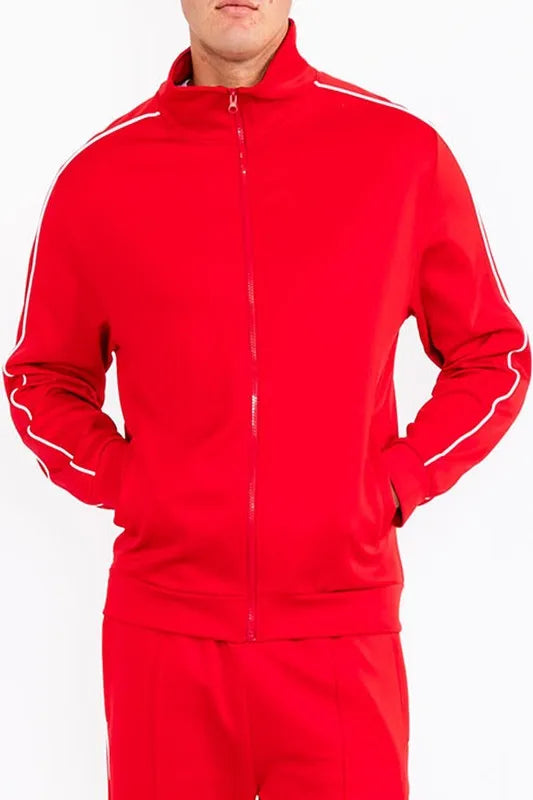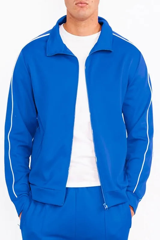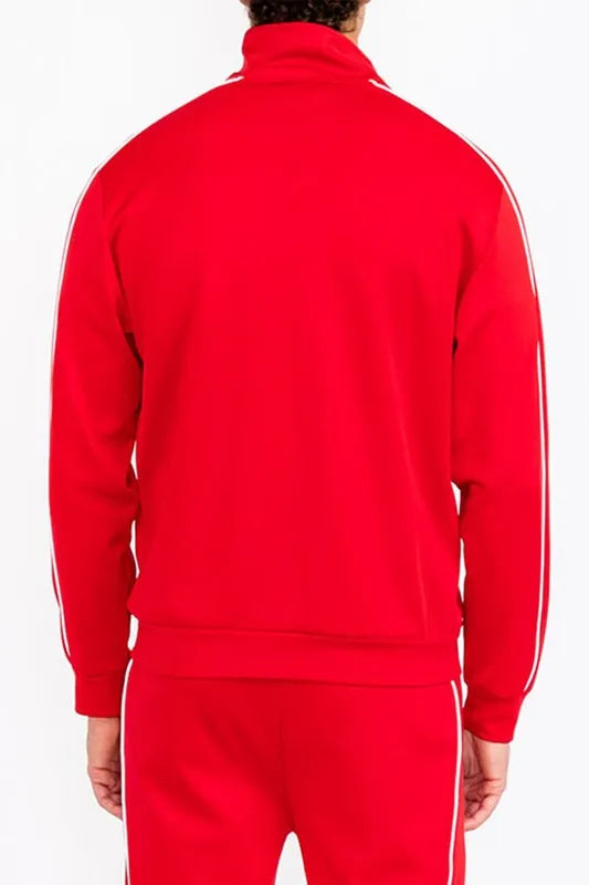 This classic track jacket combines athletic functionality with contemporary style. Crafted from a premium polyester blend fabric that offers durability and comfort, it features distinctive contrast stripes along the sleeves for a sporty aesthetic. The full zip front closure and ribbed collar provide practical wear, while the relaxed fit ensures versatility for both casual and athletic activities. The lightweight construction makes it perfect for layering and all-season wear, offering the ideal balance of style and performance for the modern wardrobe.